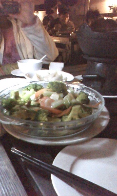 因為室內位子都已經坐滿了,所以只好坐在天臺,旁邊是一桌外國人(大概是法國人吧,聽到好像在說法文),他們家的孩子還會在旁邊跑來跑去的……價格大概就在20~70塊左右的樣子。點了個羊肉鍋、一個炒青菜和一個水餃就已經很飽了(因為吃了羊肉怕上火還買了罐王老吉了,所以說南方人在外還是必備涼茶)